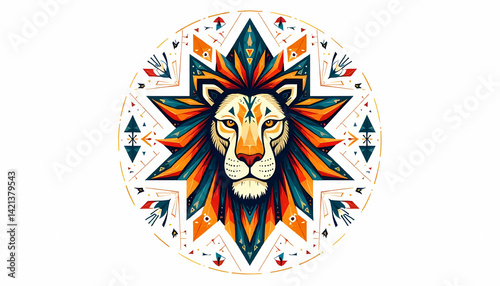 © Yasin, Obraz premium An eye-catching illustration of a lion's head surrounded by geometric shapes and patterns.