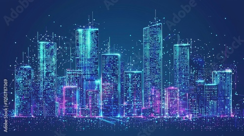 Obraz premium An futuristic city with neon lights for a cyberpunk and telecommunication...