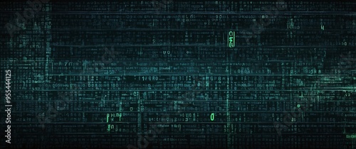 © Monmeo, Obraz premium An green abstract digital background with binary code and AI algorithms running in the background