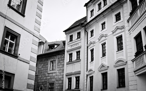 Naklejka premium An hotel with a narrow facade in Prague (Czech Republic, Europe)