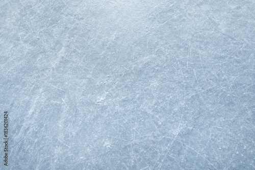 Fototapeta premium An ice surface as an ice rink with ice skates tracks. Winter sports texture. Poster with copy space.