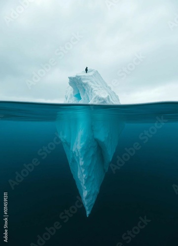 © abu, Obraz premium An iceberg with a small visible portion above water and a massive section submerged, representing personal development.
