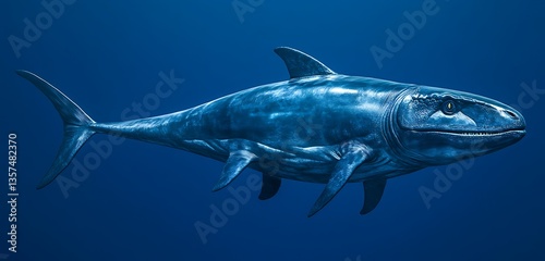 Naklejka premium An ichthyosaur with sleek, lifelike skin on a solid deep ocean blue background