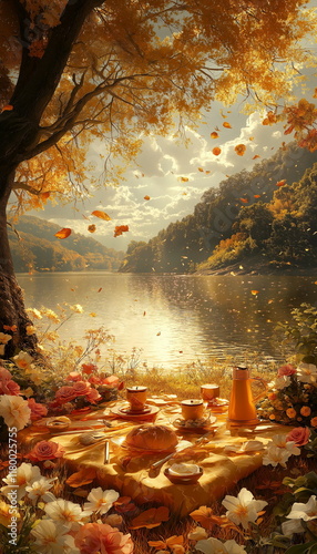 Fototapeta premium An ideal picnic on the shore of a shimmering golde_003