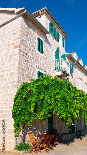 © Natasa, Naklejka premium An idyllic place to stay for your vacation - Mediterranean house at Rose Village, Lustica peninsula, Kotor Bay, Montenegro, Europe