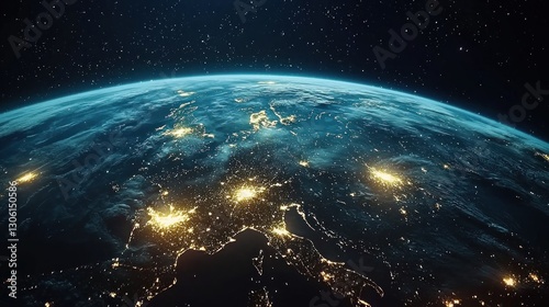 Fototapeta premium An illuminated planet Earth with night lights and a starry background