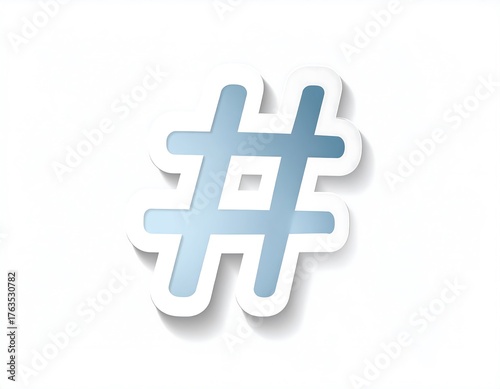 Obraz premium An illustrated hashtag symbol with a gradient blue fill, white outline, and a drop shadow, against a white background