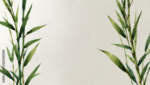 Fototapeta premium An illustration featuring delicate watercolor bamboo tree leaves, Jungle...