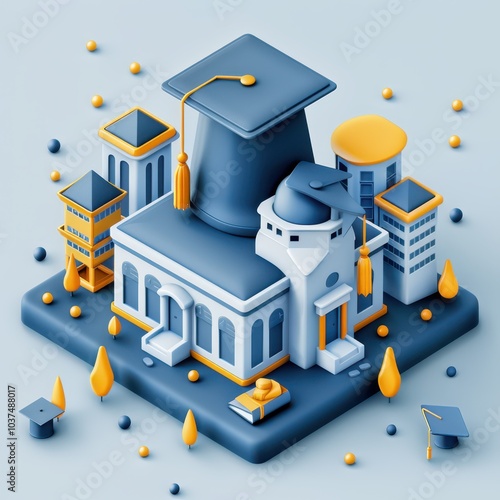 © cff999, Fototapeta premium an illustration of a building with a graduation cap on top