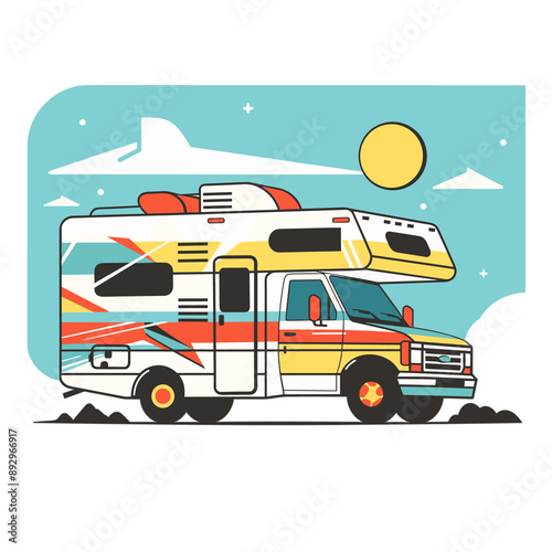 Fototapeta premium An Illustration Of A Camping Car Evokes Adventure, Cartoon Illustration