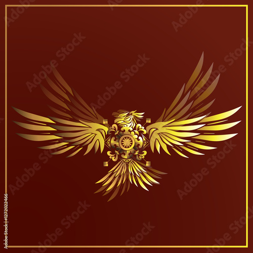 Obraz premium An illustration of a golden colored garuda spread its wings.