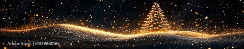 © Elle Arden , Naklejka premium An illustration of a golden glitter minimal Christmas tree on black background.