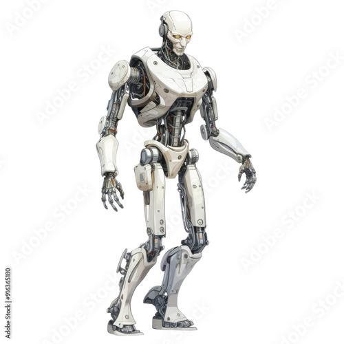 © Harddi, Fototapeta premium An illustration of a robot standing with yellow eyes