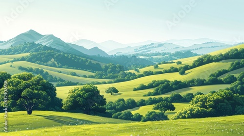 Fototapeta premium An illustration of countryside hills, featuring gentle slopes and lush...