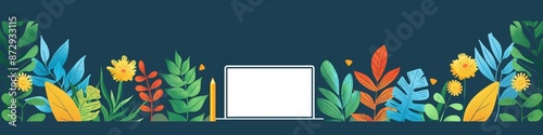 © Veronika, Naklejka premium an illustration of plants growing and a laptop and a pencil