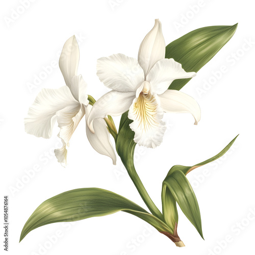 © Dennis, Obraz premium An illustration of two white flowers in a transparent background