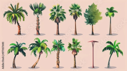 Fototapeta premium An illustration showcasing a collection of palm trees, each rendered in a...