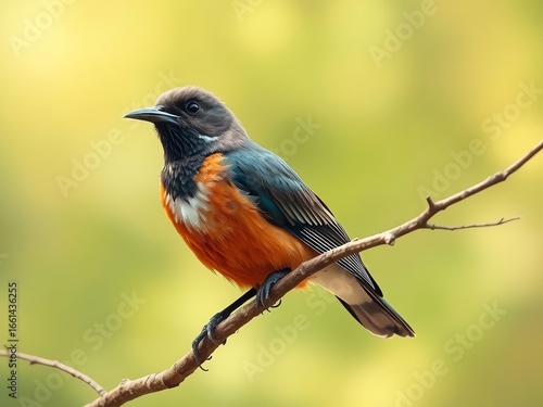 © Watcharaphonsak, Fototapeta premium an image of a bird sitting on a branch with a blurry background, there is a small bird sitting on a branch of a tree
