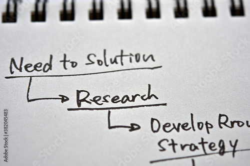 © hogehoge511, Obraz premium An image of a chart of the system implementation process that focuses on "research".