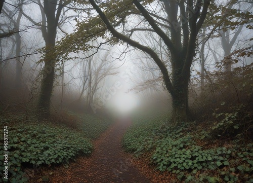 © monkik, Fototapeta premium An image of a dense overgrown forest scene