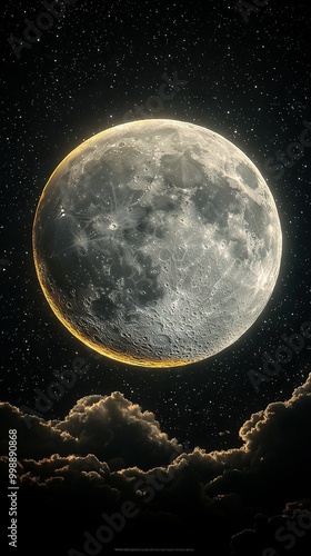 Fototapeta premium An image of a full moon in the sky with clouds in the foreground and stars in the background is commonly referred to as a nightscape It's a beautiful and peaceful scene that