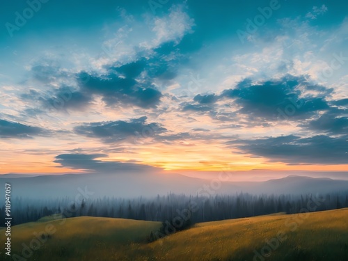 Obraz premium An image of a hazy ethereal atmosphere landscape at sunrise