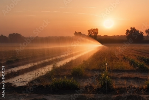 Obraz premium An image of a modern irrigation system, using technology to efficiently water crops and plants. Ai generated.
