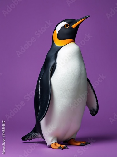 © Watcharaphonsak, Fototapeta premium an image of a penguin standing on a purple surface, there is a penguin that is standing on a purple surface