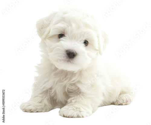 Obraz premium An image of a small, fluffy white puppy sitting down against a black background.
