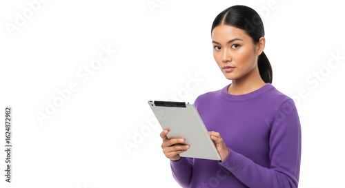 Fototapeta premium An image of asian woman holding tablet computer.. The scene includes...