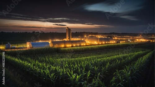 © Sahaidachnyi Roman, Obraz premium An image of rural agriculture with corn fields and biomass gas generators