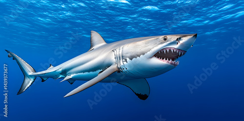 Naklejka premium An image of shark with razor-sharp teeth swimming in the depths