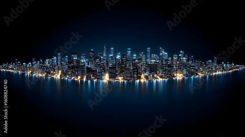 Naklejka premium An immersive look up perspective of towering skyscrapers in an urban setting,...