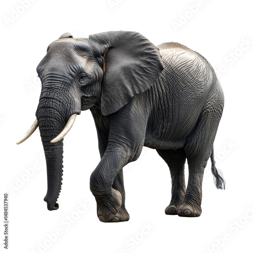 © jawad, Obraz premium An imposing African elephant strides forward majestic and powerful against on transparent background