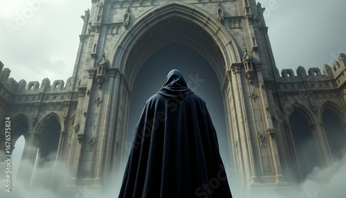 Naklejka premium an imposing figure standing in front of a grand cathedral