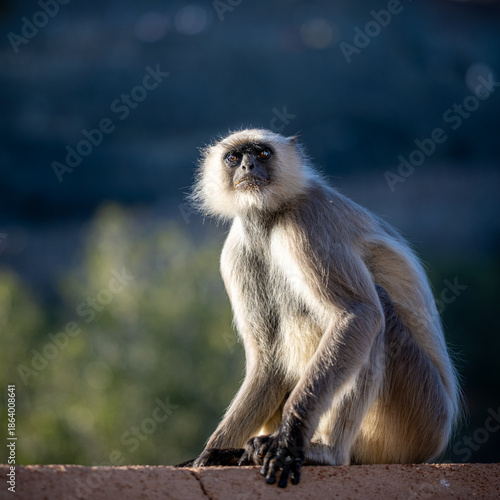 © Dan Tiégo, Obraz premium An indian lemur monkey looking at the camera