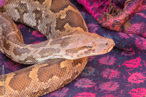 © Kandarp, Obraz premium An Indian rock python with a snake charmer