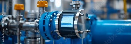 Fototapeta premium An industrial flow meter with a digital display, measuring the flow rate of a...