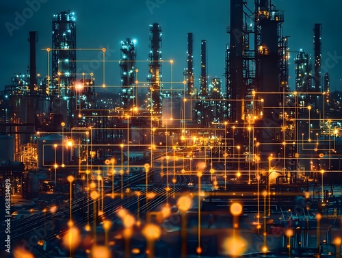 © Bussakon, Fototapeta premium An industrial hub with a decentralized smart grid and flexible power distribution driven by digital revolution long title A sprawling industrial