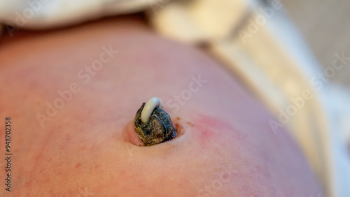 © Sebastian, Obraz premium An infants umbilical cord stump is carefully cleaned with a cotton swab