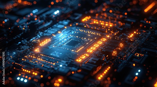 Obraz premium An innovation-driven abstract technology background centered around computer...