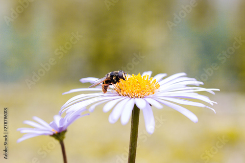 Obraz premium An insect sits on a beautiful rose flower. Insect collects nectar with its proboscis.