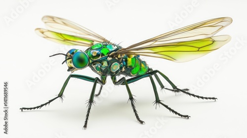 © AGIL, Obraz premium An insect with metallic green body is seen on white background