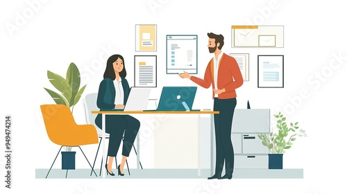 © Naknakhone, Obraz premium An insurance agent explaining various insurance plans to a couple in a modern office.