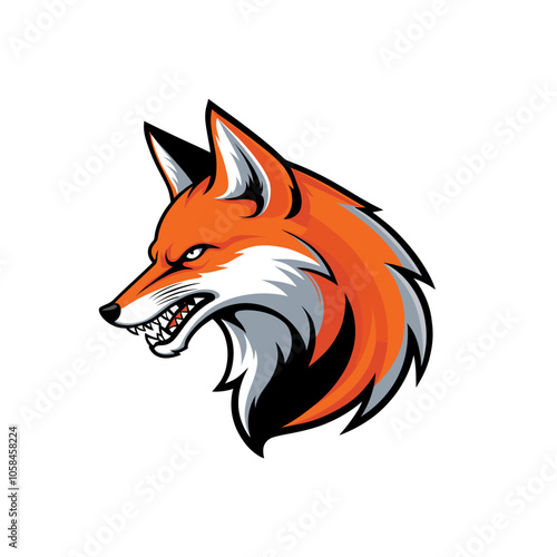 © Alva, Obraz premium An intense and fierce fox head illustration with sharp, angular fur lines. The vibrant orange and bold expression radiate strength and determination.