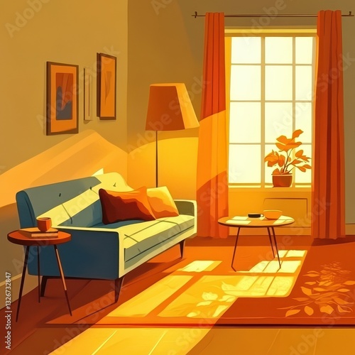 © Npicture, Fototapeta premium An interior room illuminated by strong sunlight and warm colors