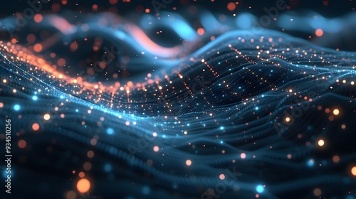 Obraz premium An interstellar data landscape with glowing data nodes representing...