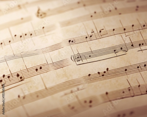 Fototapeta premium An intricate close-up of vintage sheet music, showcasing detailed notes and...