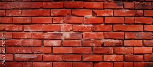 © AkuAku, Fototapeta premium An intricate pattern of red brickwork on a wall, showcasing symmetry and precision in placement. The mortar between each rectangle brick adds depth and texture