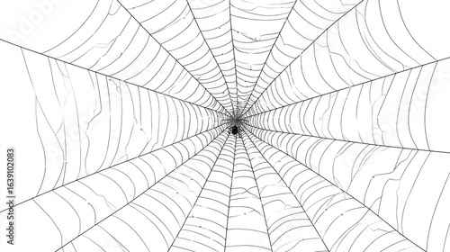 © Syarif, Fototapeta premium An intricate spiderweb centered, receding into a central focal point with gray threads